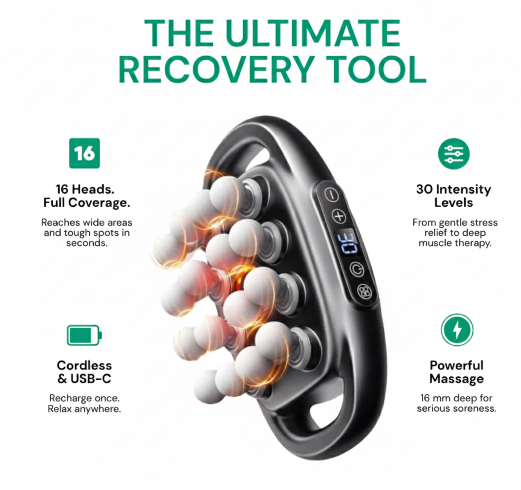 While standard devices rely solely on mechanical force, our technology utilizes infrared energy to induce localized vasodilation. This pre-warms the muscle tissue, accelerating blood flow and making deep-tissue release both more effective and more comfortable.